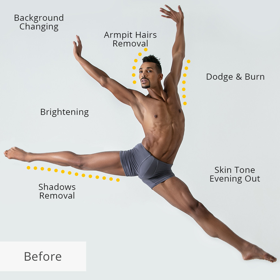 - All your photos will be retouched inside our company by the team of professional photo editors, and we never outsource your photos to somebody else.