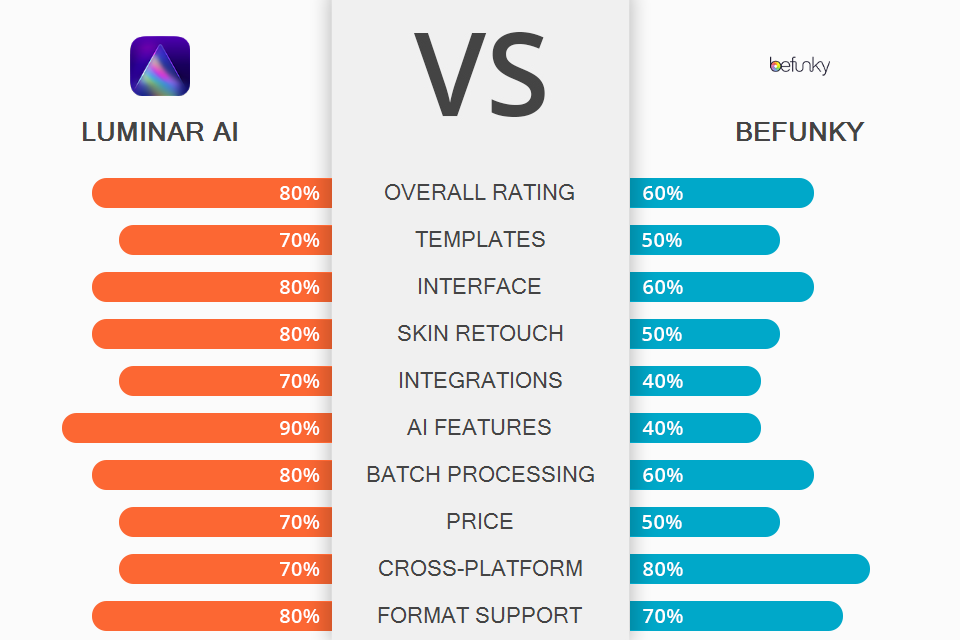 Luminar المقارنة بين الذكاء الاصطناعي والذكاء الاصطناعي Befunky يهتم المصورين المبتدئين والمحترفين من مختلف الأنواع الذين يبحثون عن منتجات سهلة الاستخدام لتحسين لقطاتهم بسلاسة.