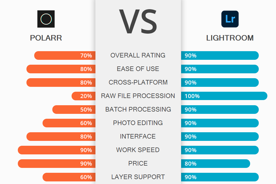 بمقارنة polarr مقابل lightroom ، تجدر الإشارة إلى أن كلا البرنامجين شائعان بين المصورين ويسمحان لهم بإجراء الكثير من عمليات التلاعب بالصور ، بدءًا من الطبقات ، إلى التعديلات الأساسية وتحرير الصور. كلا البرنامجين متوافقان مع مختلف الأجهزة.