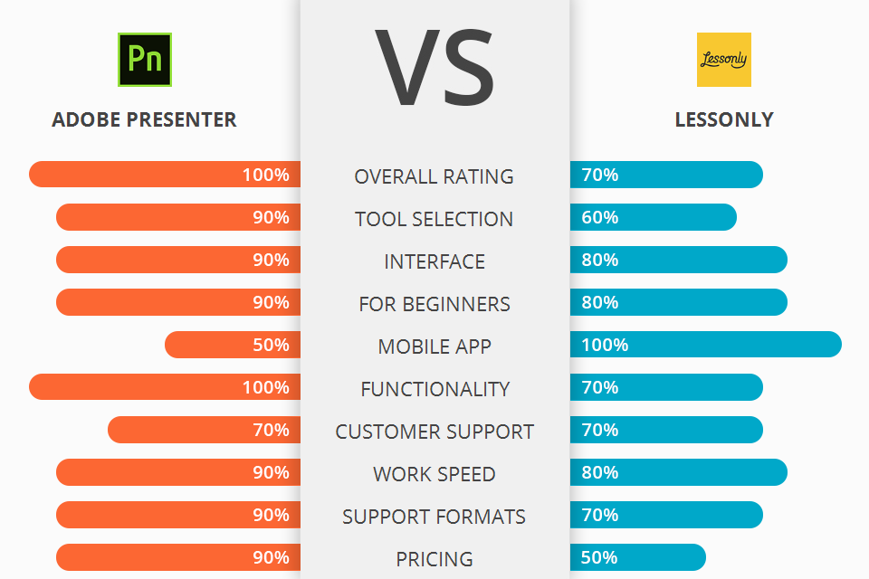 ستساعدك المعلومات الواردة أدناه على مقارنة Adobe Presenter مع Lessonly لاختيار الخيار الأفضل.