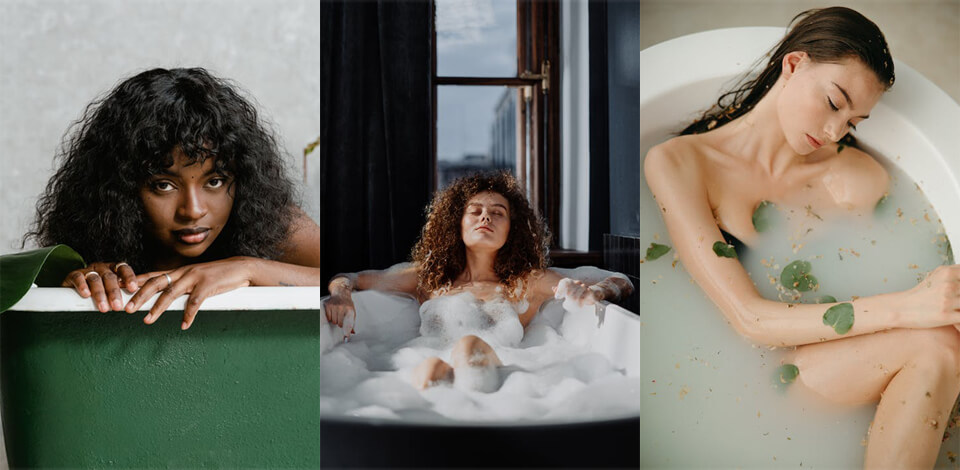 If you want to establish as relaxed of an atmosphere for your photoshoot in bathtub as possible, try using your favorite aroma oils and turn on some calming music. You can also light up a calming candle to achieve the same purpose.