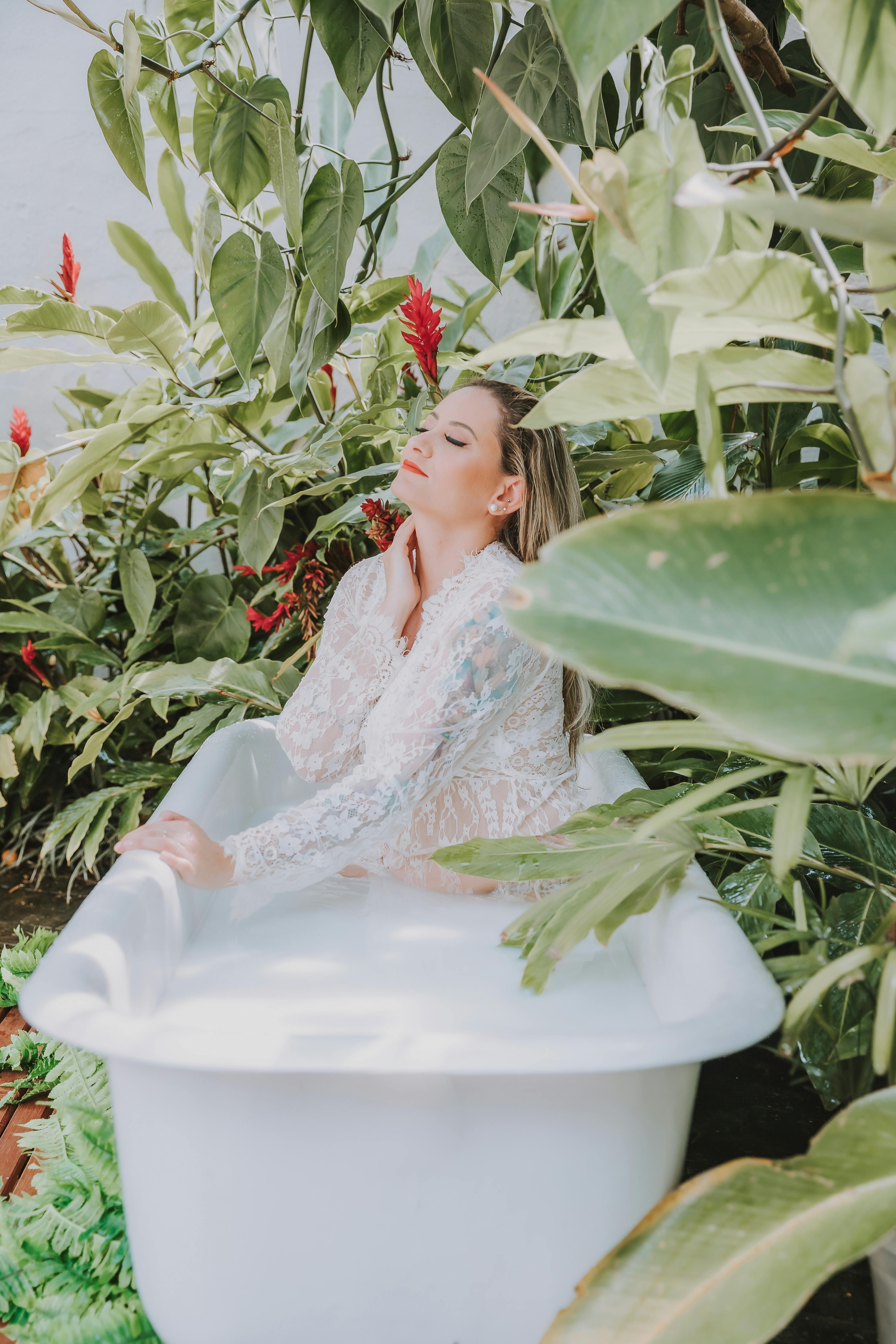 To ensure your shot has the best lighting possible, put the bathtub near a big window. Natural lighting will cast appealing soft shadows. As a result, you’ll be able to experiment with various angles. If the scene is overly dark, use a reflector to get rid of rough shadows and add a spark to the subject’s eyes.