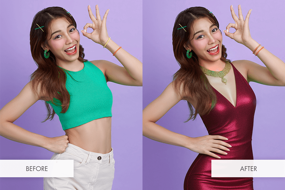 This might be the best AI replace tool if you’re looking for an iOS/Android application. It’s particularly great at transforming clothes, as it can change a casual outfit into a beautiful dress of any color you want.