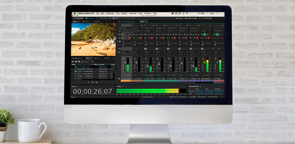 Adobe Audition is designed for people, who work in the sound recording, radio, audio post-processing spheres. The program offers features that will help you make the sound clear and crisp. Noise reduction tools and an approach to multi-track recording are especially useful. You can set levels for each speaker and edit them separately during the sound post-production.