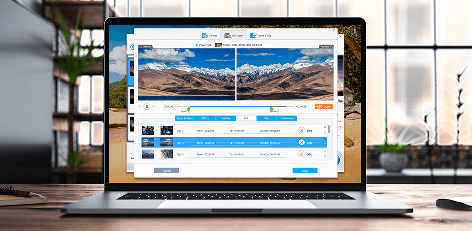If you want to combine several videos, you simply have to click “Add Files” and select in which order you want the clips to play using the drag-and-drop feature. Additionally, Gihosoft lets you cut unwanted clip sections and join the remaining parts. Finally, you can preview the footage before exporting it to be certain it looks exactly how you want it to.