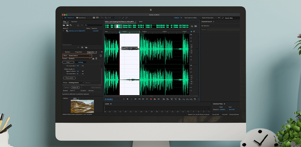 With the Audition tool, you can analyze video and activate the Delete Silence option. As a result, the program will delete any silent or low-audio parts defined according to the silence definition provided by you.