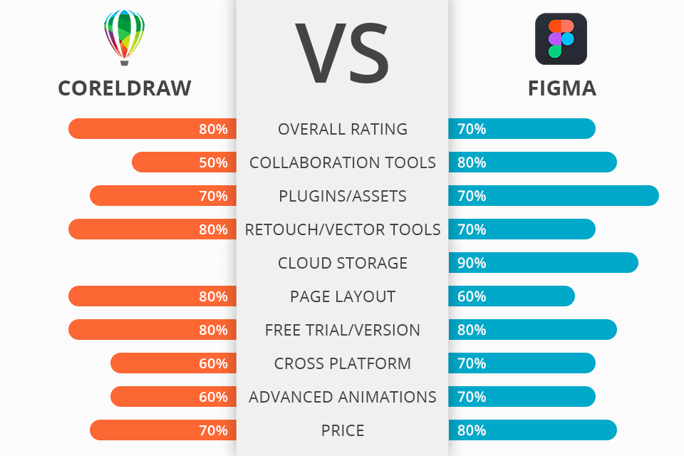 Figma has proven to be a free and straightforward online vector tool with extensive prototyping and standard web development capabilities. But it lacks some of the robust functionality of CorelDRAW, particularly in the field of raster graphics and print preparation. In general, the opponents’ capabilities in terms of vector illustration and branding are approximately equal. But beyond that, their functionality intersects poorly.