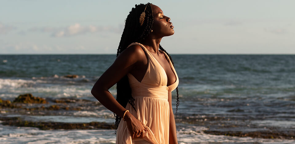 There is no need to show your face. The main thing is to focus on your posture. The curve of the shoulders and the line of the neck can emphasize the deeper meaning of a photo and demonstrate your inner strength. It’s one of the easiest goddess photo ideas you can implement.
