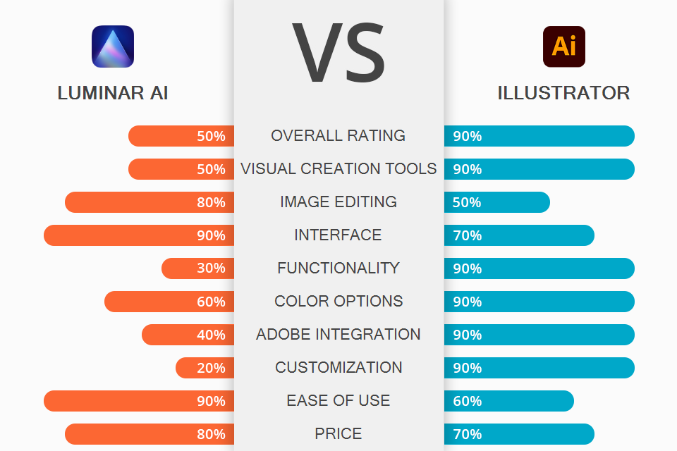 Examine the unique functionality provided by each software to determine whether you should pick Luminar AI or Illustrator for your visual projects: