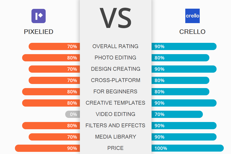 Both programs are quite affordable. They have free versions that provide users with access to libraries of media files. The prices for their Pro versions are different. Both have extra benefits such as teamwork tools and access to paid files. While Pixelied costs $9.95/month, Crello costs $7.99/month.