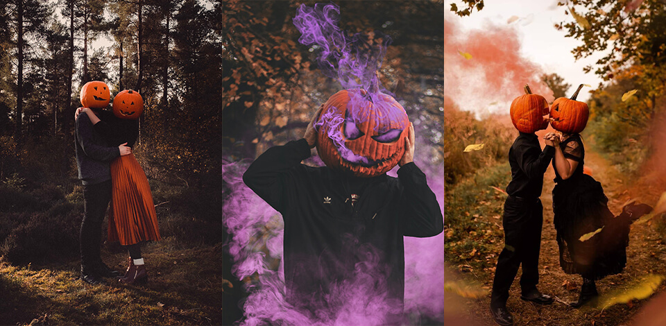 If you’ve been blessed with having a significant other, I strongly recommend taking couple pumpkin head pictures, as this is the kind of photoshoot that both of you will fondly remember for years to come. The pictures you’ll take will look absolutely fantastic so don’t miss this opportunity to immortalize your relationship with some cool atmospheric Halloween-themed photos.