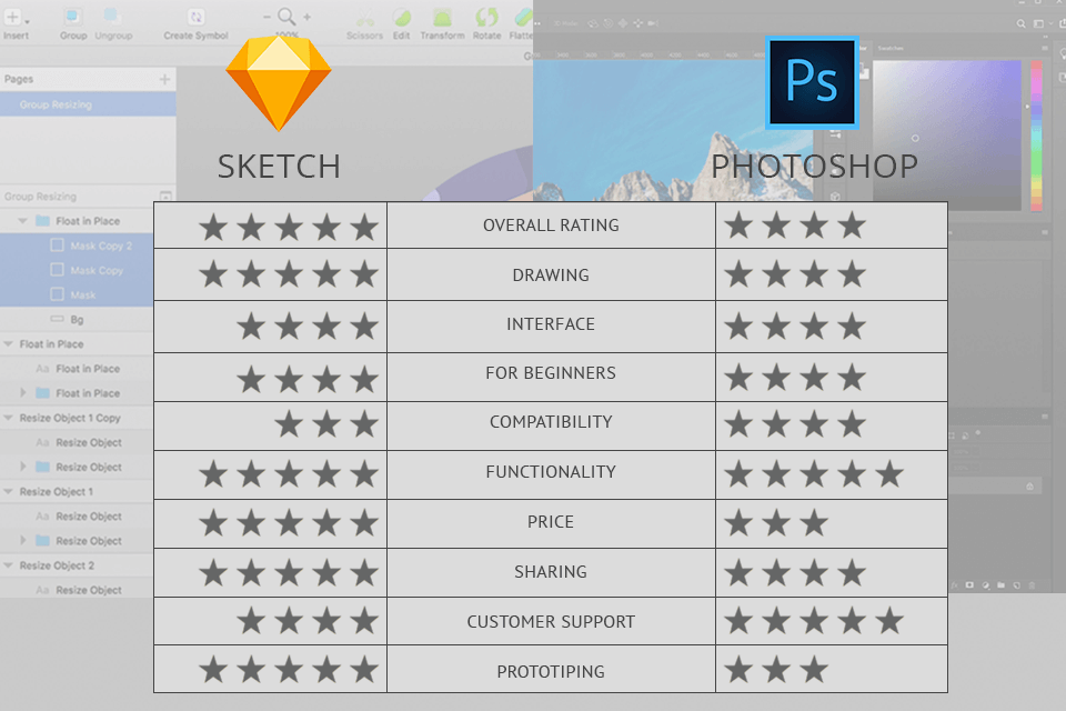 If we compare the functions of Photoshop vs Sketch, we will see that they are very similar. However, there are still some slight differences that distinguish them from each other.