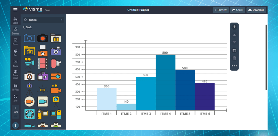 Visme automatically animates individual chart elements to attract the attention of your audience. You can pick from four different chart animation options or disable it.