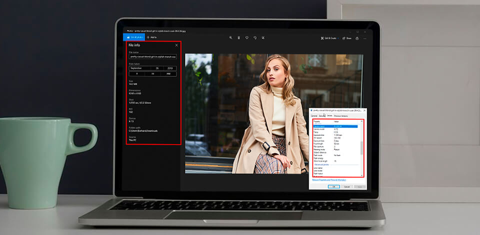 You can also use a special image viewer or the in-built tools of your OS. It requires more time, as you need to save a picture on your device first and then read the EXIF data with the help of a photo viewer or the services provided by your operating system.